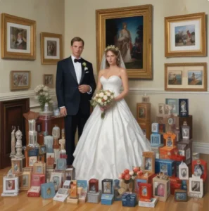 عروس و داماد، هدایای زیاد و گران قیمت خود را به نمایش گذاشتند.