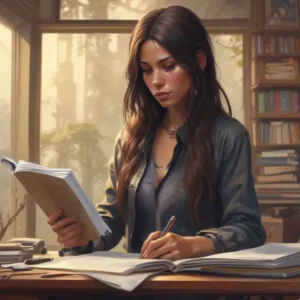 او مطالعه می کند، مطالعه می کند، مطالعه می کند، تا عطش خود را برای {کسب} دانش فرو نشاند.