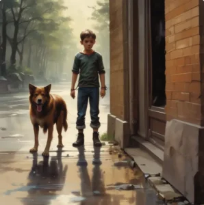 چشمان کودک، ترس او را از سگ وحشی نشان داد.