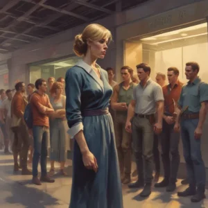سعی کردیم زنی را که از اجبار به ماندن زیاد در صف عصبانی بود، آرام کنیم.