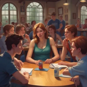 سالی موقع صحبت با افراد کلاس خیلی دست و پا چلفتی است ولی در جمع دوستان خودش کاملاً راحت است.