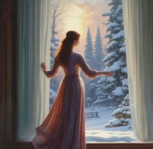 A. The lifting of the curtain disclosed a beautiful winter scene.