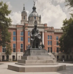 A. The statue outside the court building is considered a symbol of justice.
